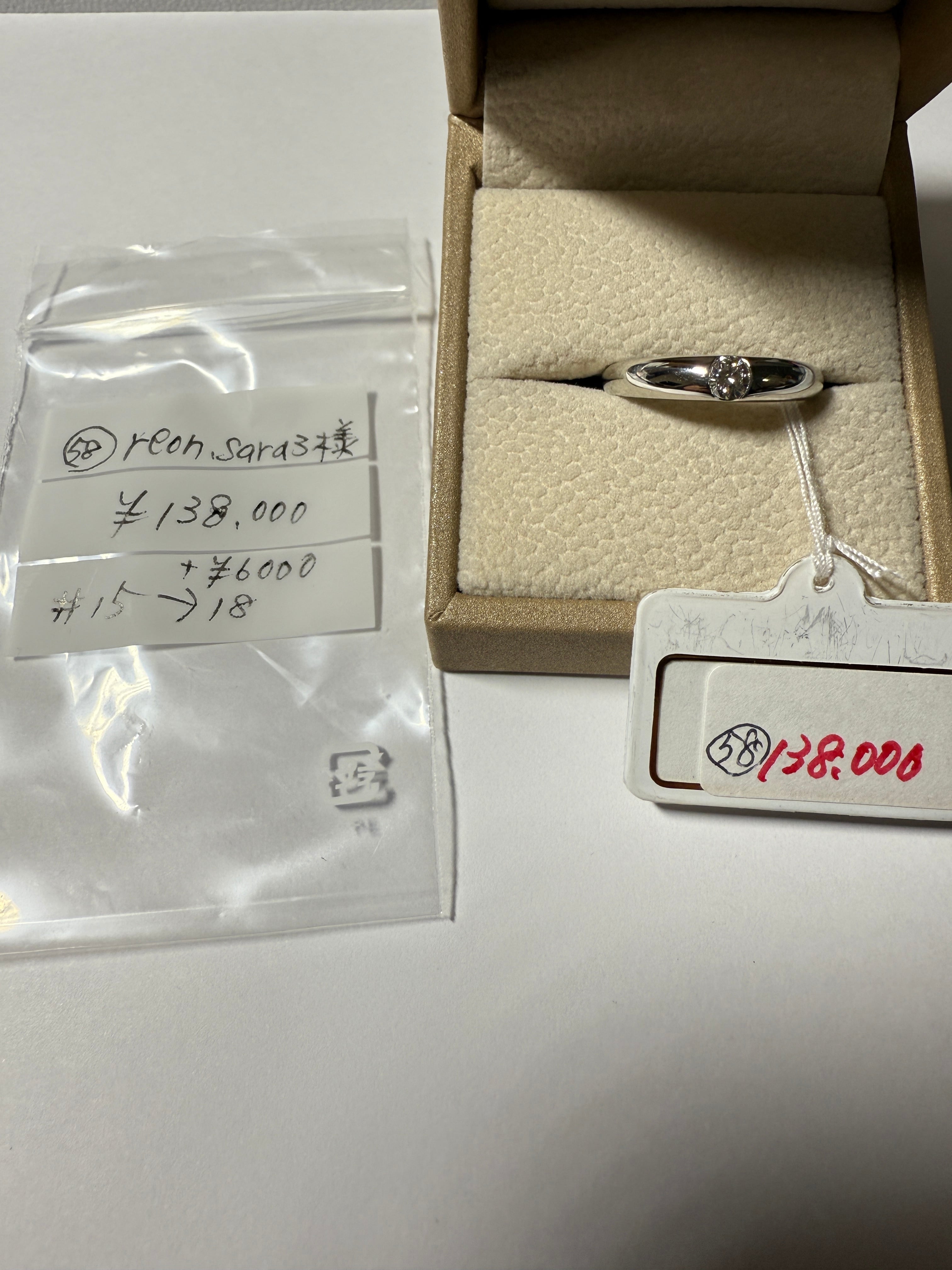 ①58番リング ¥135000+¥6000(サイズ18へ変更)=¥141000